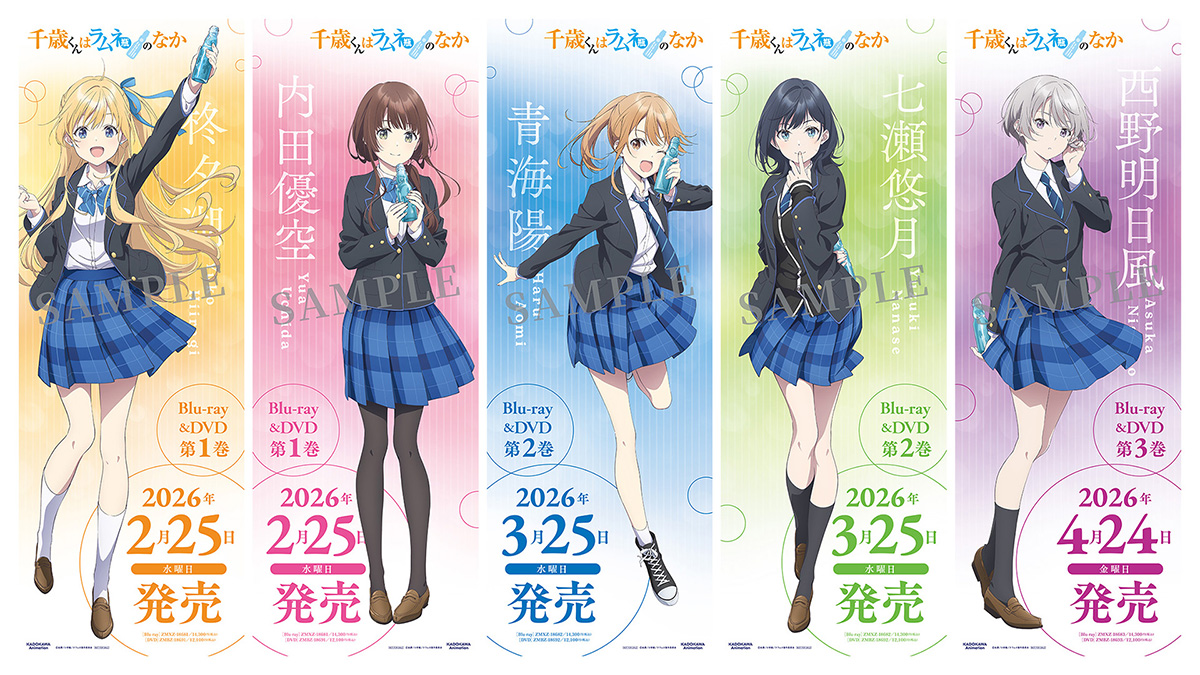 TVアニメ『千歳くんはラムネ瓶のなか』のBlu-ray&DVDの発売決定を記念して、全国のアニメイトにてキャラクターポスターを使用したポスタージャックキャンペーンを開催!また、対象期間中、ポスタージャック対象店舗およびアニメイト通販にてBlu-ray&DVD各巻をご予約いただいたお客様に、発売時にそれぞれのキャラクターポスターをプレゼント!
