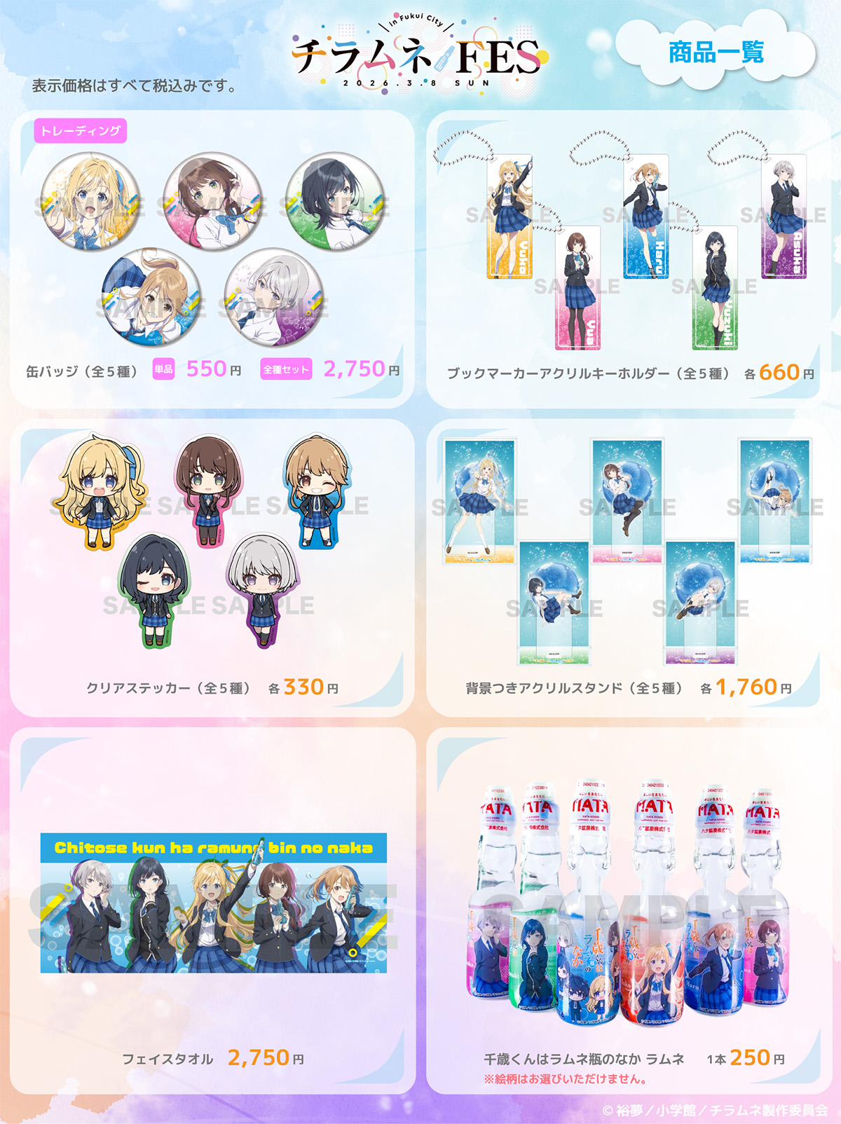 TVアニメ『千歳くんはラムネ瓶のなか』スペシャルイベント「チラムネFES」にて実施されるイベント物販の情報を公開いたしました!