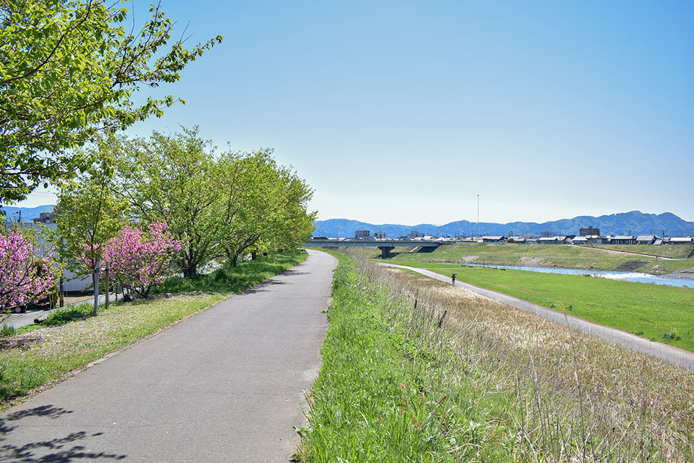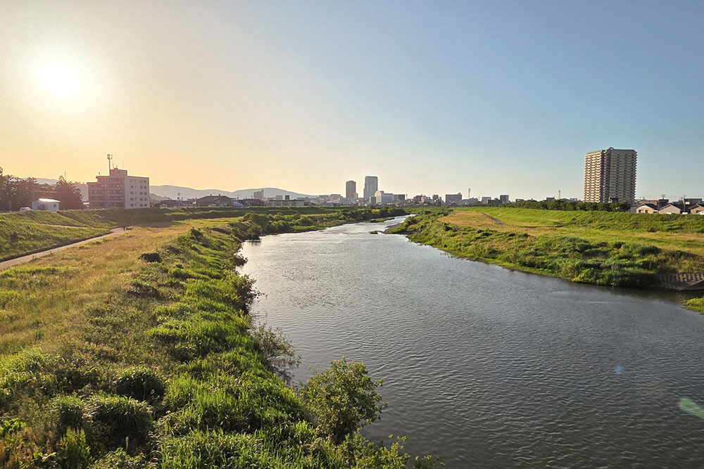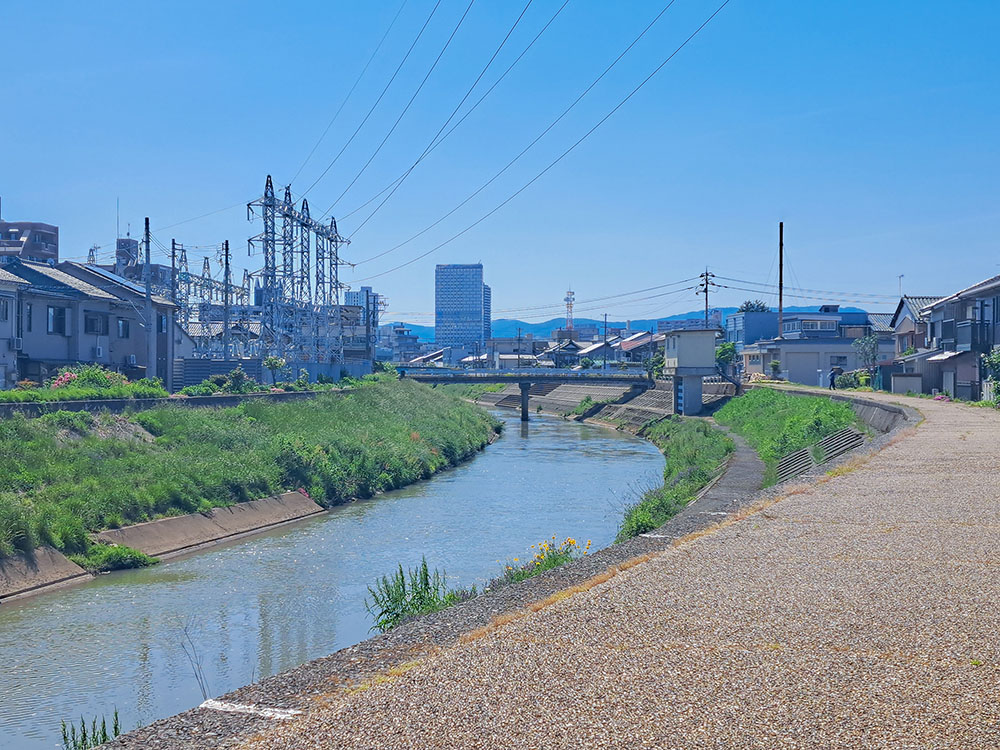 今週は、福井市中心部を流れる「足羽川」です。遊歩道は藤志高校への通学路の一部にもなっています。
